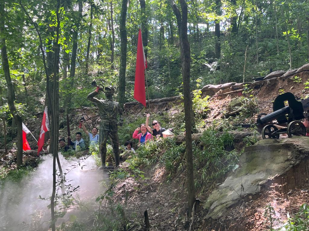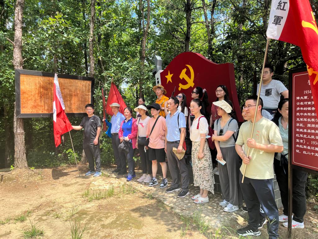 7月8日,公司党委与公司机关党委人文社会科学研究院支部一同前往省直机关党员干部教育基地——英山长征精神体验园,开展主题为“传承红色基因 践行初心使命”的党日活动。全体人员通过重走一段长征路,唱一首红军歌,诵一篇红色经典诗词,打一场“围剿战”,听一堂红色历史传承课,重温一次入党誓词,体验一顿红军饭,开启追寻中国革命光辉历程的脚步,回顾中国共产党筚路蓝缕、披荆斩棘的奋斗历程,坚定理想信念,传承红色基因,厚植爱党爱国情怀,践行初心使命。
