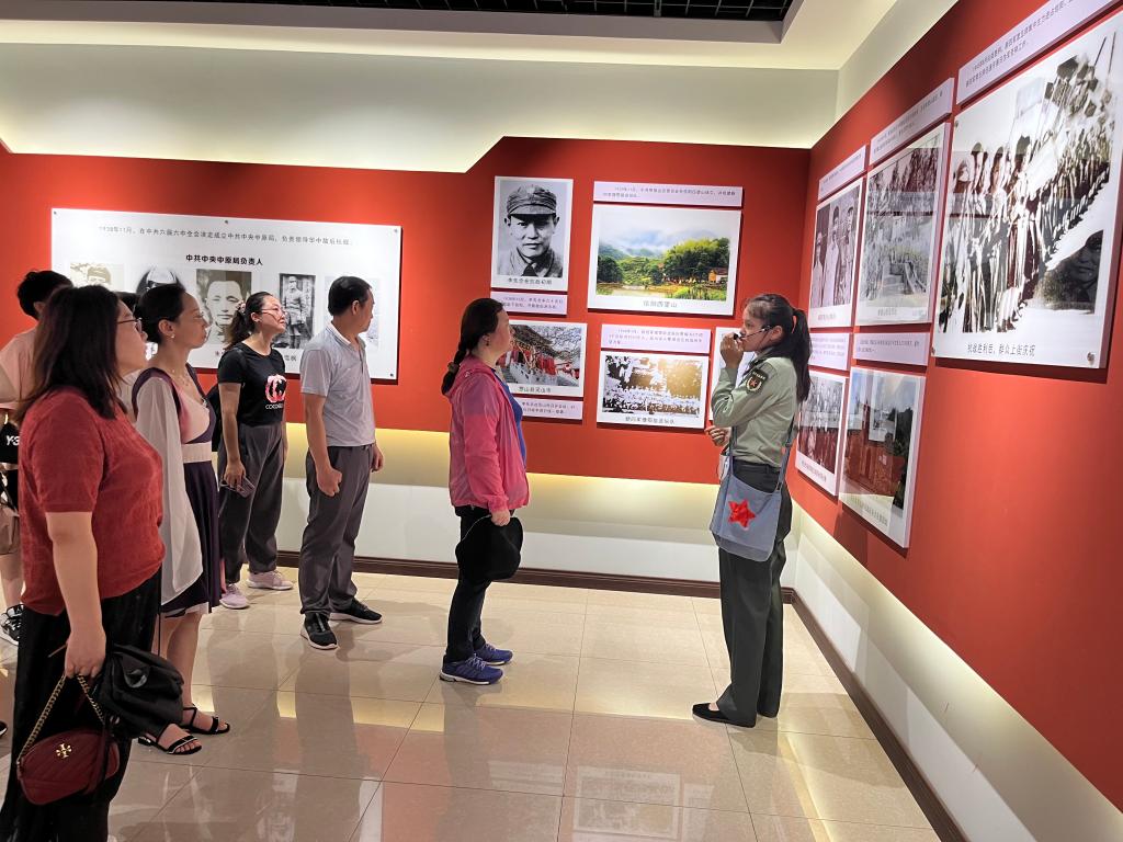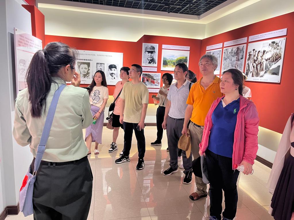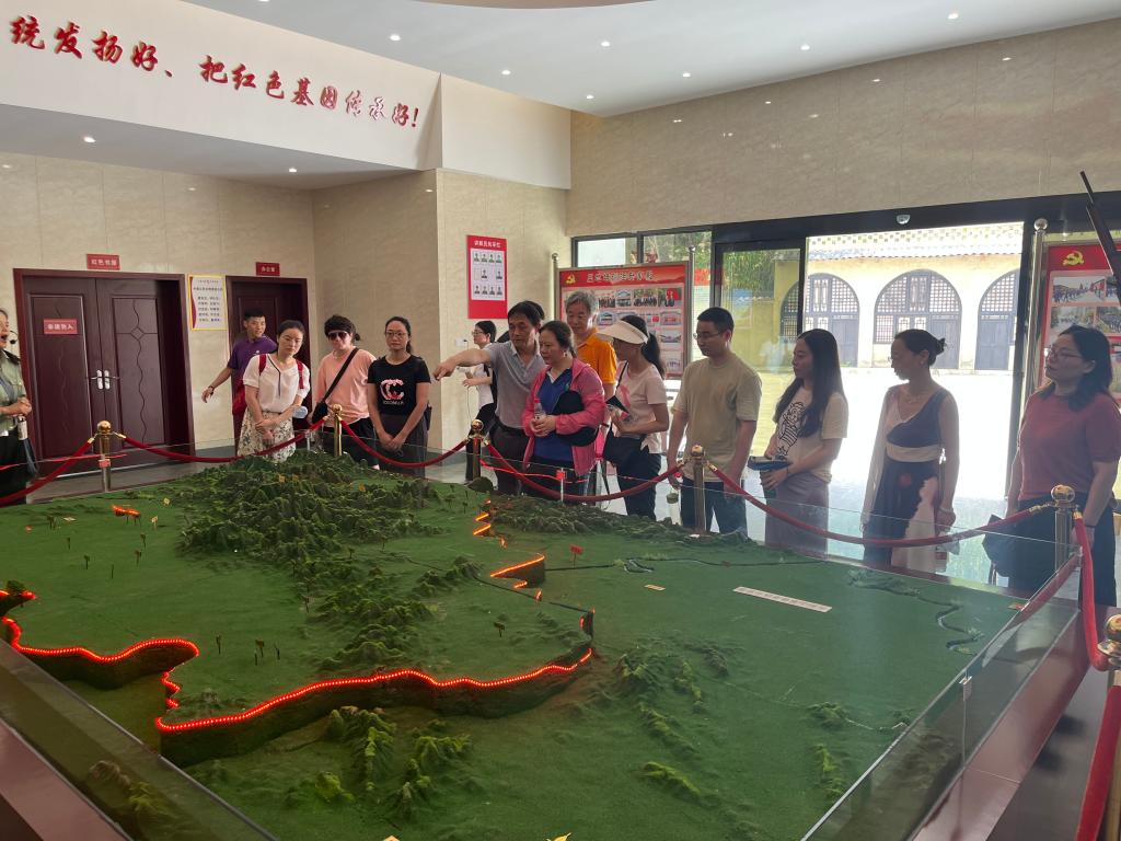 行至大别山革命历史文化陈列馆,这里集中展现了1927年至1949年大别山和英山发展党组织、开辟根据地、组织“三二暴动”、组建红军、北上长征等历史事件。这里的每一件物品都承载着老一辈革命家的心血与努力,诉说着激荡人心的战火青春,演绎着金戈铁马的壮士豪情。大家在这里追寻革命先辈的足迹,感受他们不屈的民族精神和高尚的爱国情操,领会红色文化的思想内涵和时代价值,思想上和心灵上受到深刻洗礼。