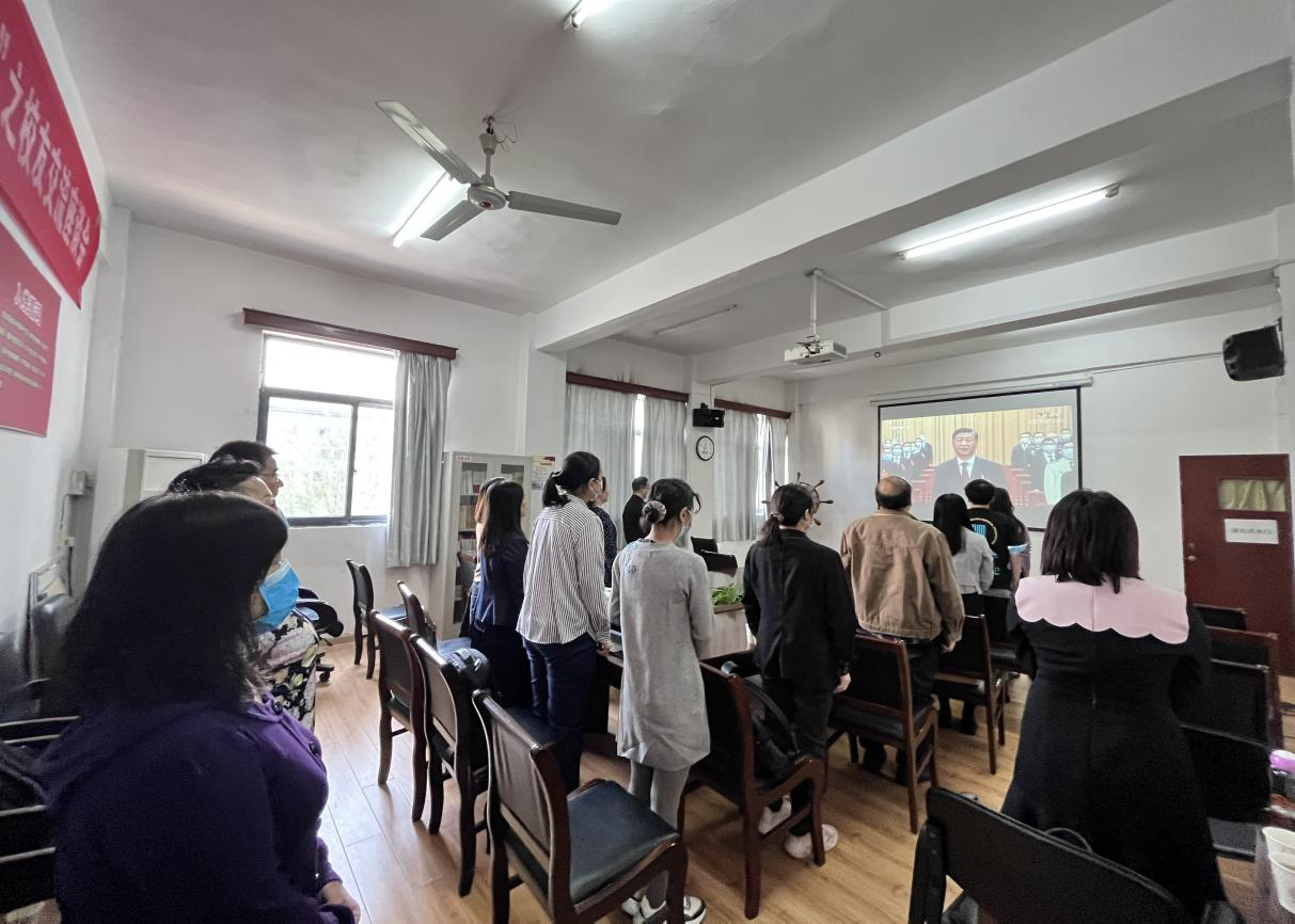 10月16日上午10:00,中国共产党第二十次全国代表大会开幕会在人民大会堂大礼堂举行。公司党委书记郑全新、副书记张梦婵,副经理邹爱华、江岚,党员教师、员工党员、第三期团校学员、员工干部200余人在公司三楼会议室、教2-206、教2-208、教2-511教室集中收听收看党的二十大开幕会盛况。