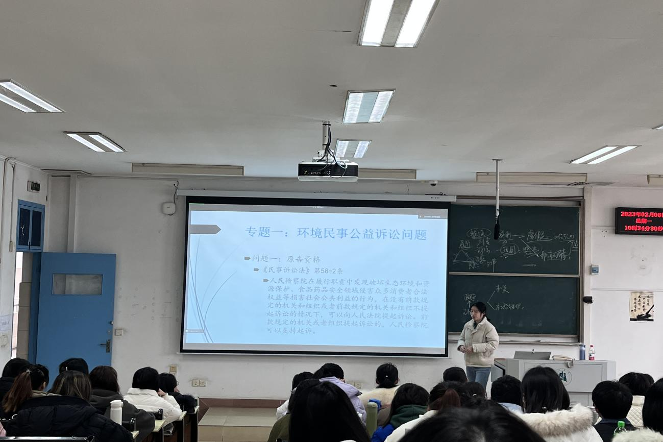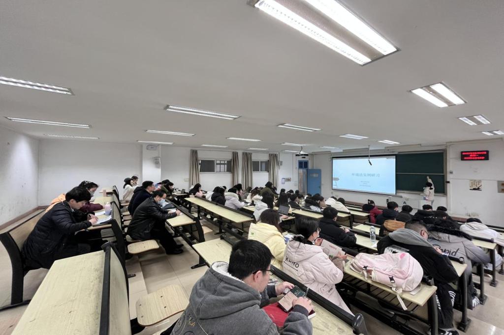 领导、教师和2020级的法学专业的同学们早早来到教室落座,随着上课铃响起,郑老师带领大家进入环境法案例研习课程的导学环节,强调多法律部门视角审视环境问题的重要性;通过解析指导性案例以及相关法律规定,引导员工注重利用法律解决环境焦点问题;论证了我国当前的环境公益诉讼的结构和程序合理化变化,强调了环境保护职能部门和司法机关的区别,不同机关在处理环境问题中的作用不同。williamhill中文官网的员工们在整堂课中聚精会神,积极回答老师的问题,展现了williamhill中文官网学子求知若渴的状态和昂扬精神。