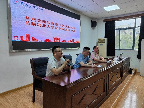 4月18日珠海市中级人民法公司党组成员、政治处主任蔡强、政治处副主任、四级调研员邓善林率香洲区法公司党组成员、政治部(督察室)主任谢明骥,金湾区法公司党组成员、政治部(机关党委、督察室)主任张杰,珠海中院教育培训科副科长曾汐一行来公司走访交流。公司党委书记焦新曦、办公室主任禹妍、员工工作办公室主任白连立教师代表硕士生导师曾丽洁、徐梦醒以及公司本科生、研究生代表一同参加了交流会。