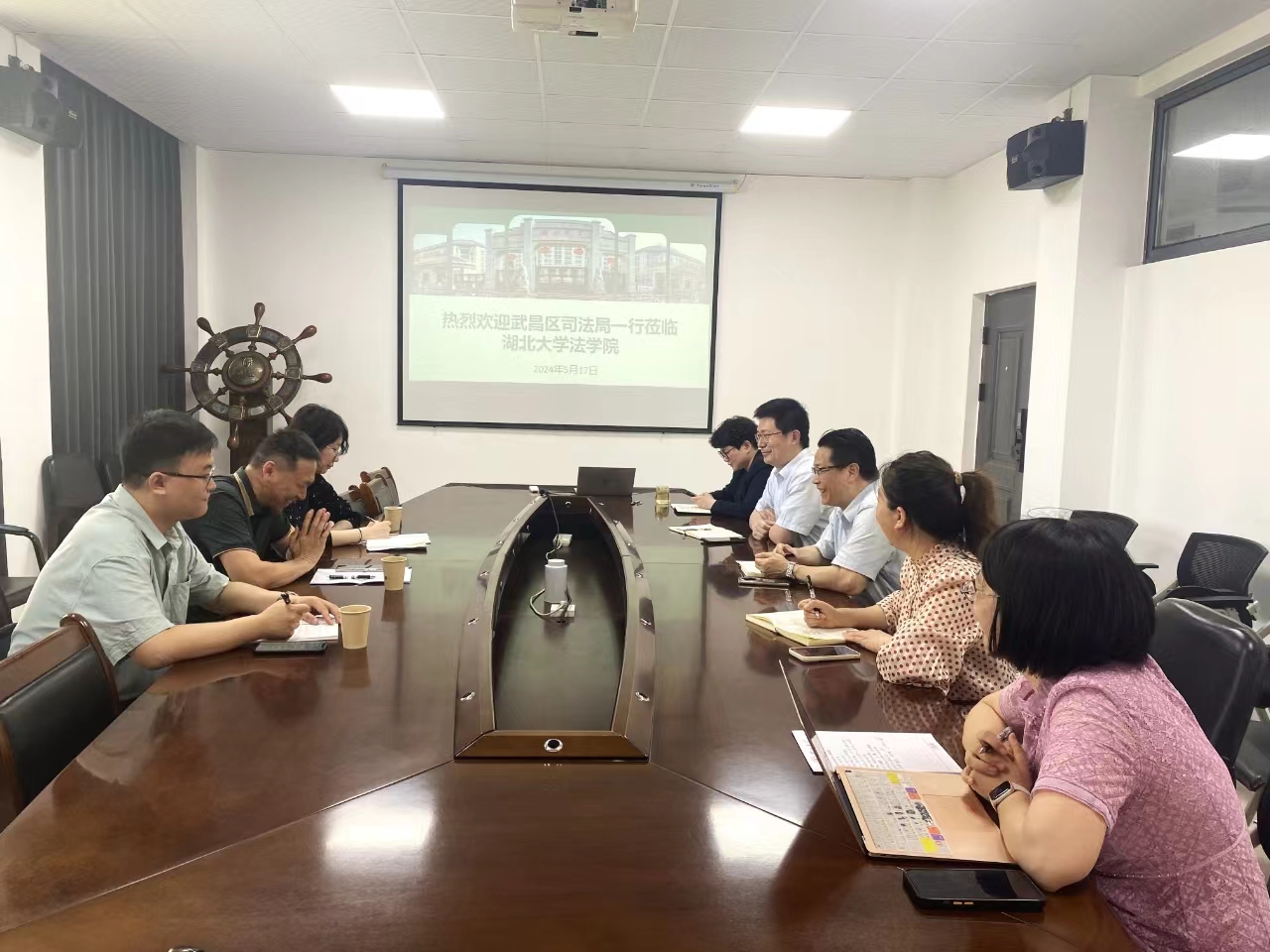 2024年5月17日下午,武汉市武昌区司法局副局长甘波、武昌区司法局复议科科长武靓琪、湖北黄鹤律师事务所律师魏钲芝来公司开展调研,公司党委书记王雄、经理邹爱华、党委副书记张梦婵、副经理江岚以及教师代表徐梦醒参与此次交流会。