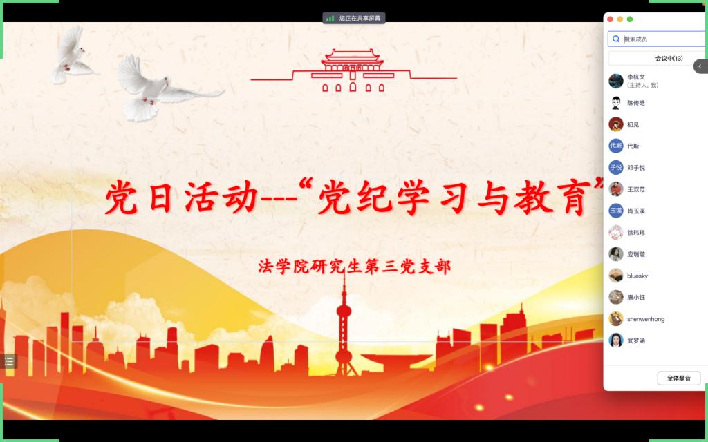 习近平总书记指出,“党要管党、从严治党,靠什么管,凭什么治?就要靠严明纪律。”纪律严明是马克思主义政党的显著标志和独特优势,也是我们党加强自身建设、不断发展壮大的重要历史经验,无论对党的整体、党的组织还是党员个人,党的纪律都具有不可代替的重要作用。新修订的《处分条例》是我们党的纪律的基础性法规,内容丰富、涉及面广,针对性强,同各级党组织和每一名党员息息相关。我们支部为研究生员工党支部,员工党员也在今年即将走向属于自己的岗位,参与到社会主义建设当中,党纪的学习对毕业生党员的教育意义不言而喻。“纪律是管党治党的戒尺,也是党员干部约束自身行为的标准和遵循。各级党组织要把纪律建设摆在更加凸出的位置,强化经常性纪律教育,广大党员干部要不断增强纪律意识,把严守纪律规矩落到实处,使铁的纪律真正转化为日常习惯和自觉遵循。”党员同志们不仅要原原本本的学,更是要将党纪的学深学精,通过本次主题党课,引导全体党员深刻认识到党的纪律的严肃性和权威性,把学纪、遵纪转为日常行为准则,进而加强毕业生党员的纪律意识,加强自我约束和政治定力。