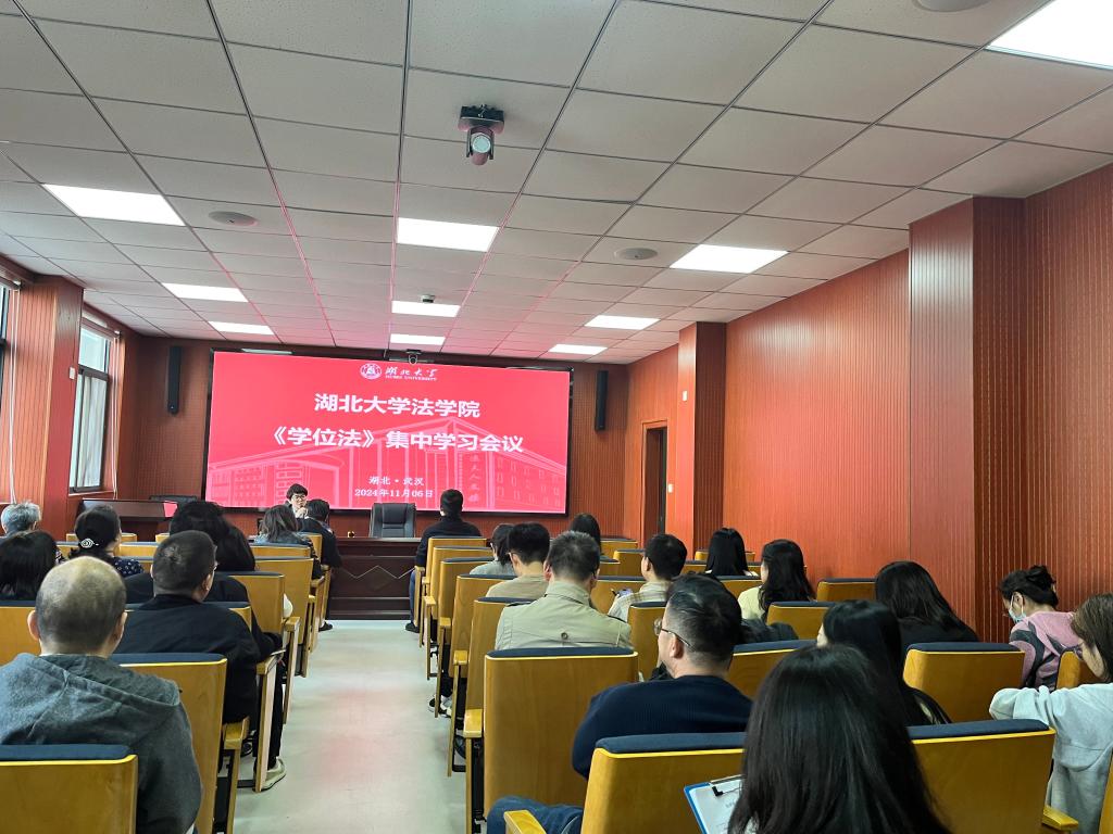 为贯彻落实国家教育政策,加强对学位管理制度的理解与认识,2024年11月6日下午,williamhill中文官网法公司在二号教学楼二楼报告厅组织召开了《中华人民共和国学位法》集中学习会议。会议由副经理江岚主持,全体教师出席。