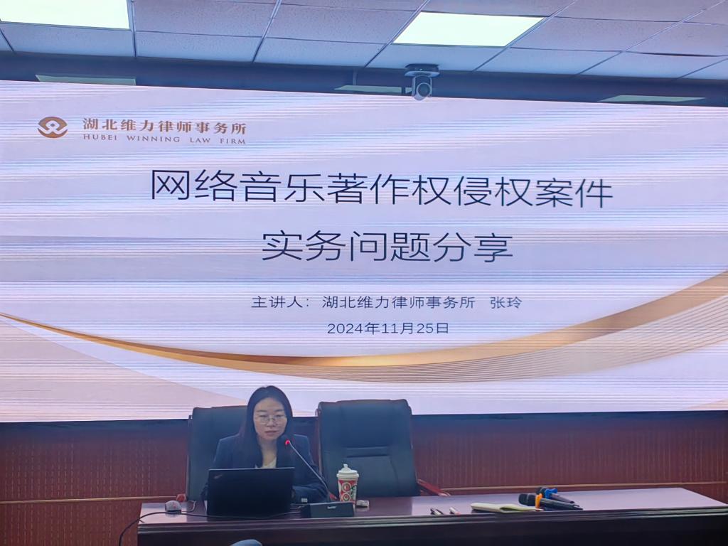 随后,张律师围绕“网络音乐著作权侵权案件实务问题分享”进行了主题分享,为同学们详细介绍了互联网法院审理网络音乐著作权案件情况,并探讨了她正在办理的有关“线上KTV”APP涉著作权侵权案。张律师系统而生动的分享不仅加深了同学们对网络音乐著作权基础知识的认识,更提升了同学们在处理网络著作权侵权案件的实践技巧。(审核:江岚)
