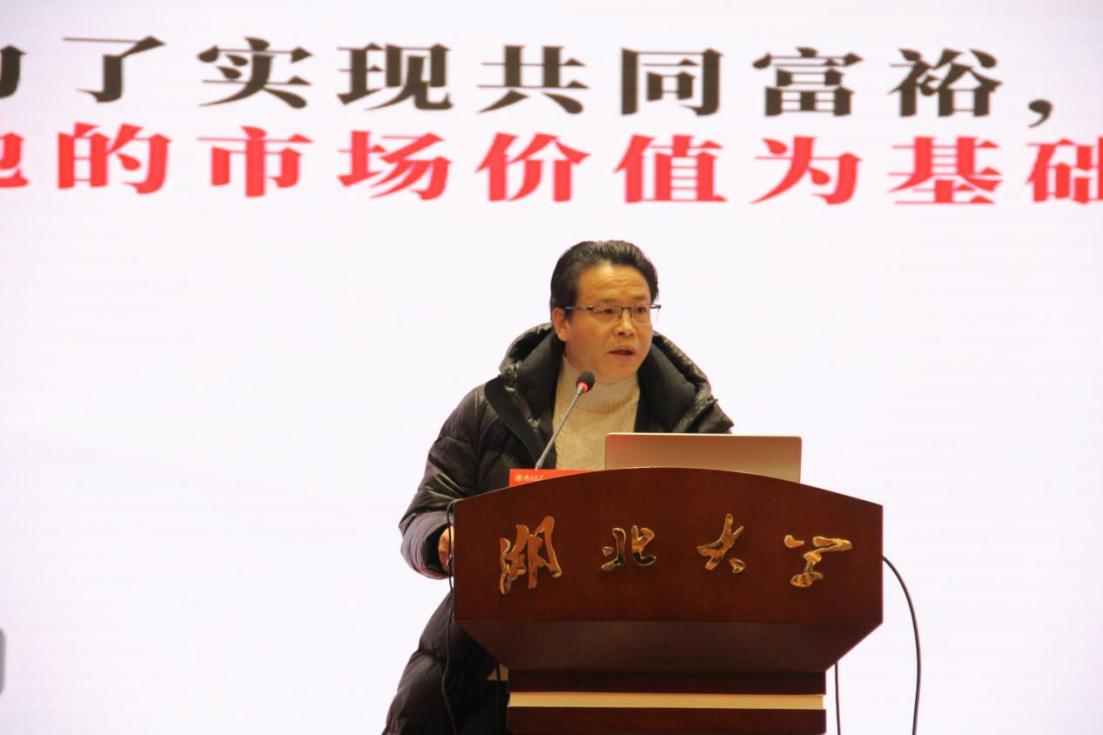 主题报告环节由华中师范大学政治与国际关系公司教授陈荣卓主持。省法学会经济法学会研究会会长、中南财经政法大学williamhill中文官网教授刘大洪就“论农业现代化与‘有为政府’的经济法促进”这一主题进行深入阐述,武汉大学williamhill中文官网教授柯坚围绕“《能源法》的价值内涵及其农业法治意蕴”作主题报告,邹爱华就“实现共同富裕的土地征收补偿标准”这一主题进行深入探讨,华中科技大学法律与公共政策研究院助理研究员陈鹏飞围绕“数据流通监管赋能新质生产力:内在逻辑、风险挑战与路径因应”作主题报告。