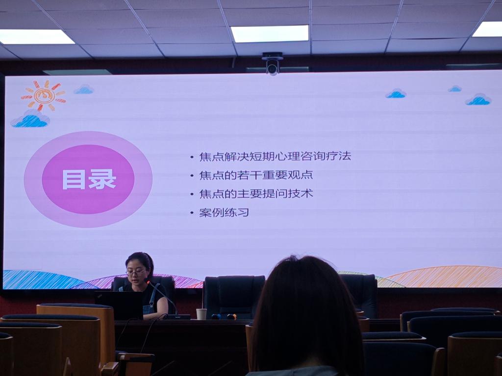 讲座伊始,朱奎闽老师介绍了“焦点解决短期心理咨询疗法”,这是一种以解决问题为导向的简短疗法,其特点为简单易学、用时短、应用广泛且效果良好,受到心理咨询师、教育者等众多群体的欢迎 ,是高效的心理干预方法。