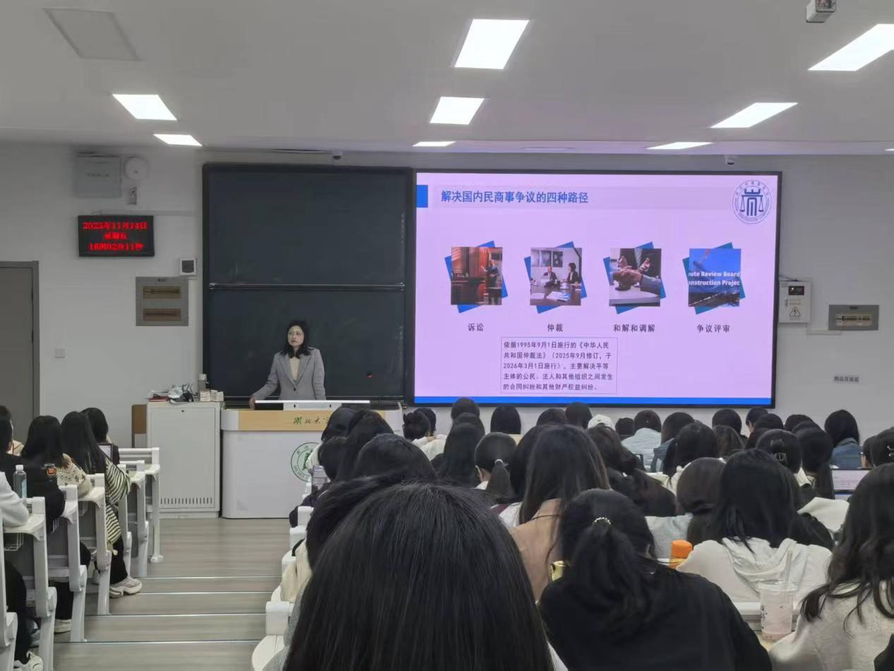 (通讯员:杨浩杰)为帮助williamhill中文官网学子进一步理解仲裁理论、了解仲裁发展,2025年11月14日下午,williamhill中文官网邀请研究生校外导师、武汉仲裁委一级秘书熊颖老师,在教4-507开展了主题为《以仲裁方式解决民商事争议的路径和优势》讲座。